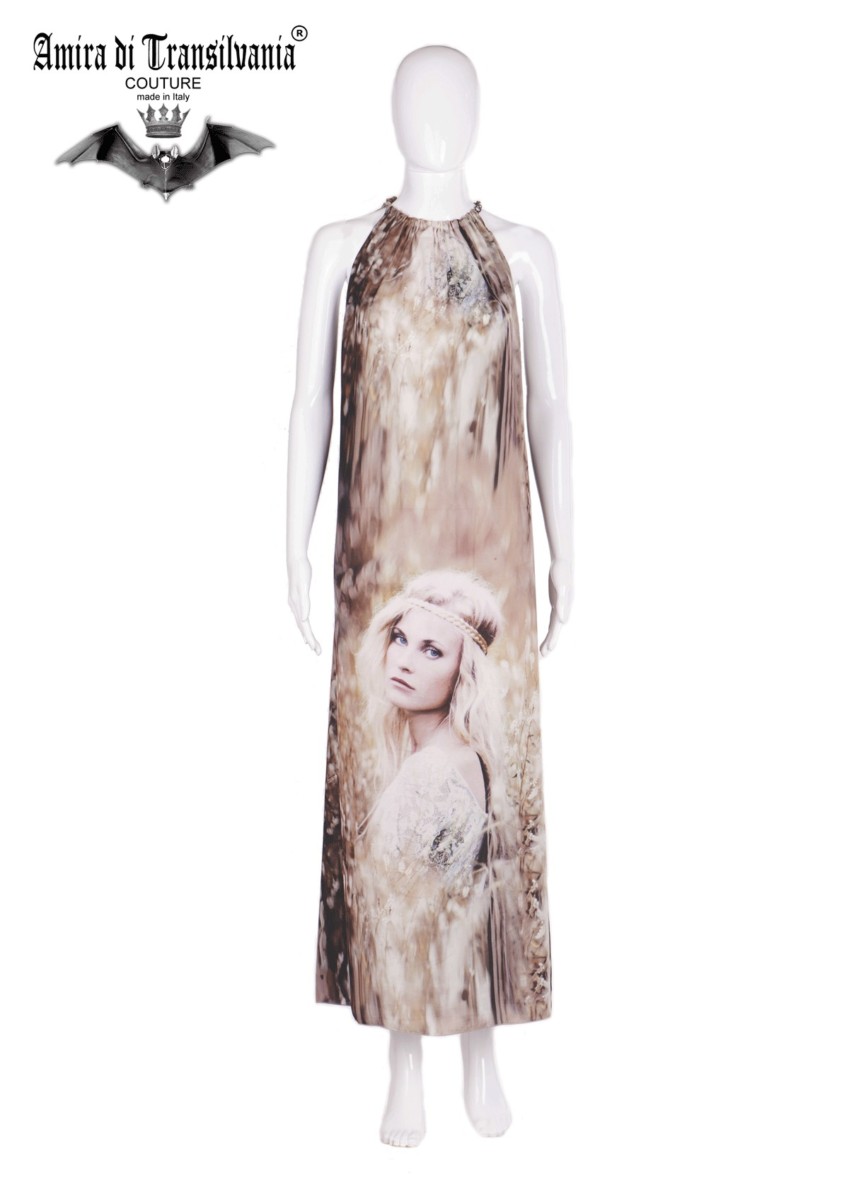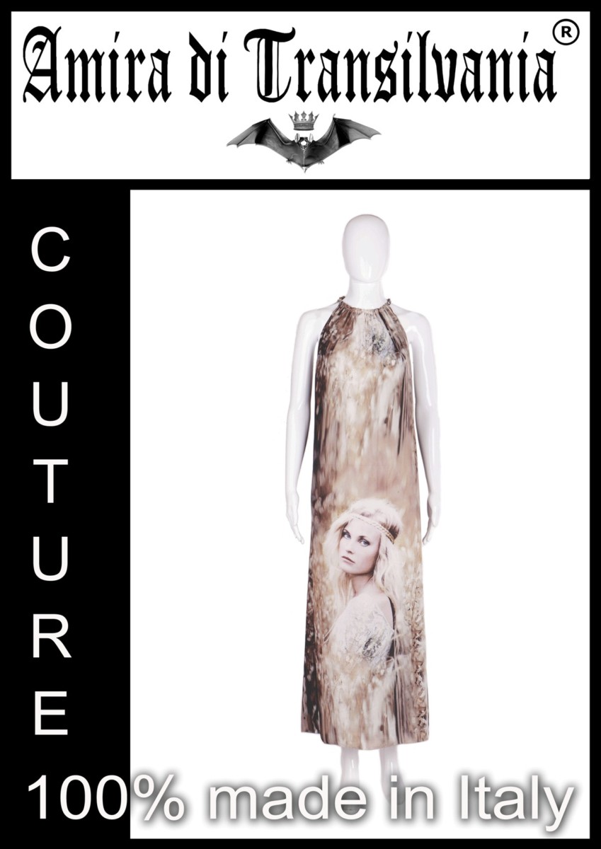 Abito couture beige fantasia volto primavera