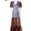 Stravagante Abito couture in jeans e organza fantasia leopard. 100% made in Italy. Qualità sartoriale.