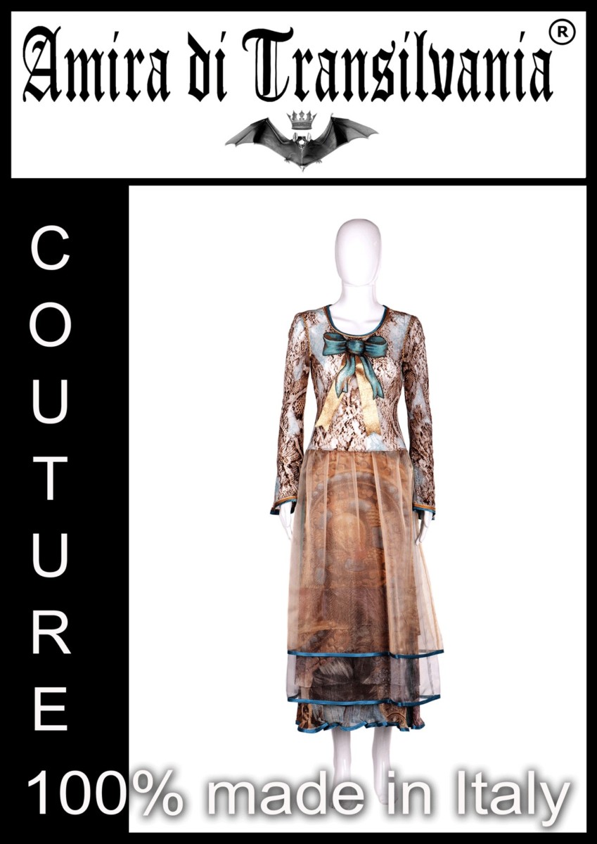 Realizzato artigianalmente e manualmente in pizzo sopra e organza sotto. Il pizzo è a fantasia serpente. Fodera con fantasia in tinta.