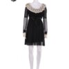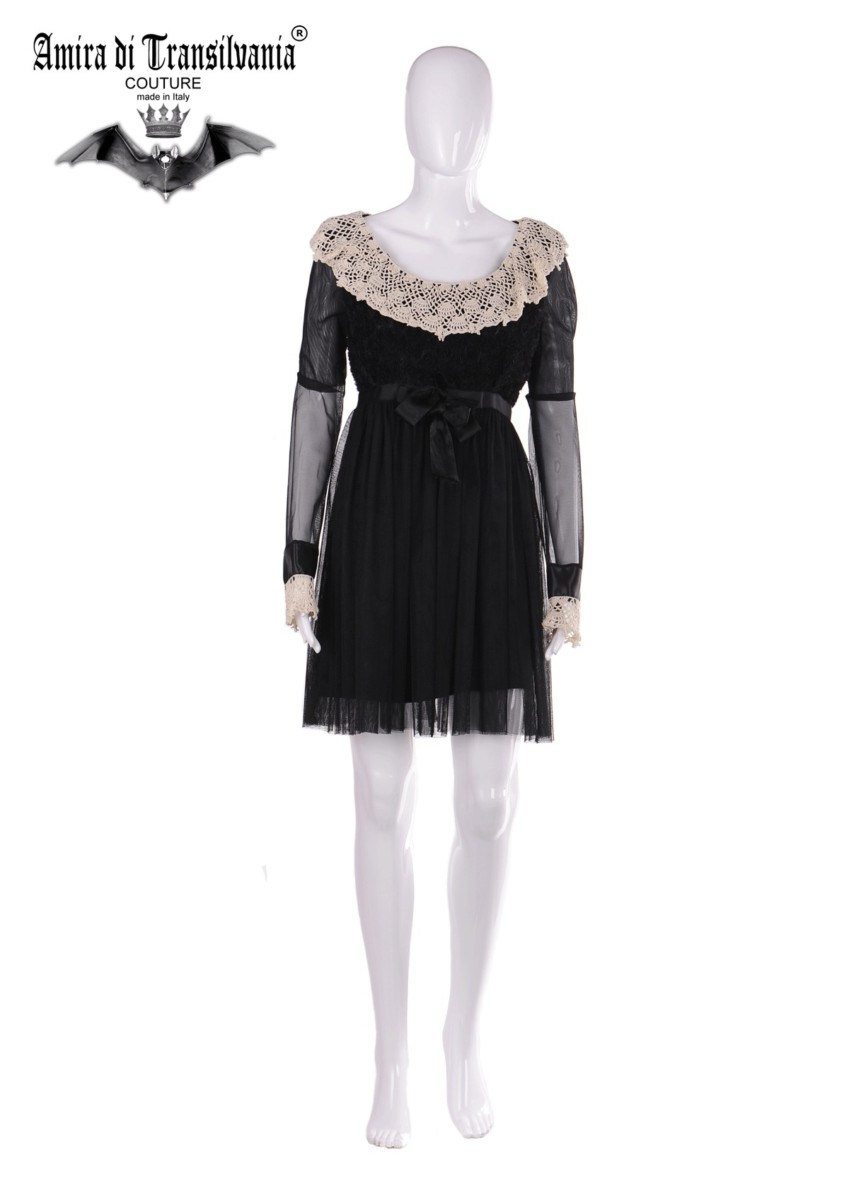 Abito elegante in voal trasparente e ampio collo in macramè fatto a mano con la tecnica originale dalla Transilvania.