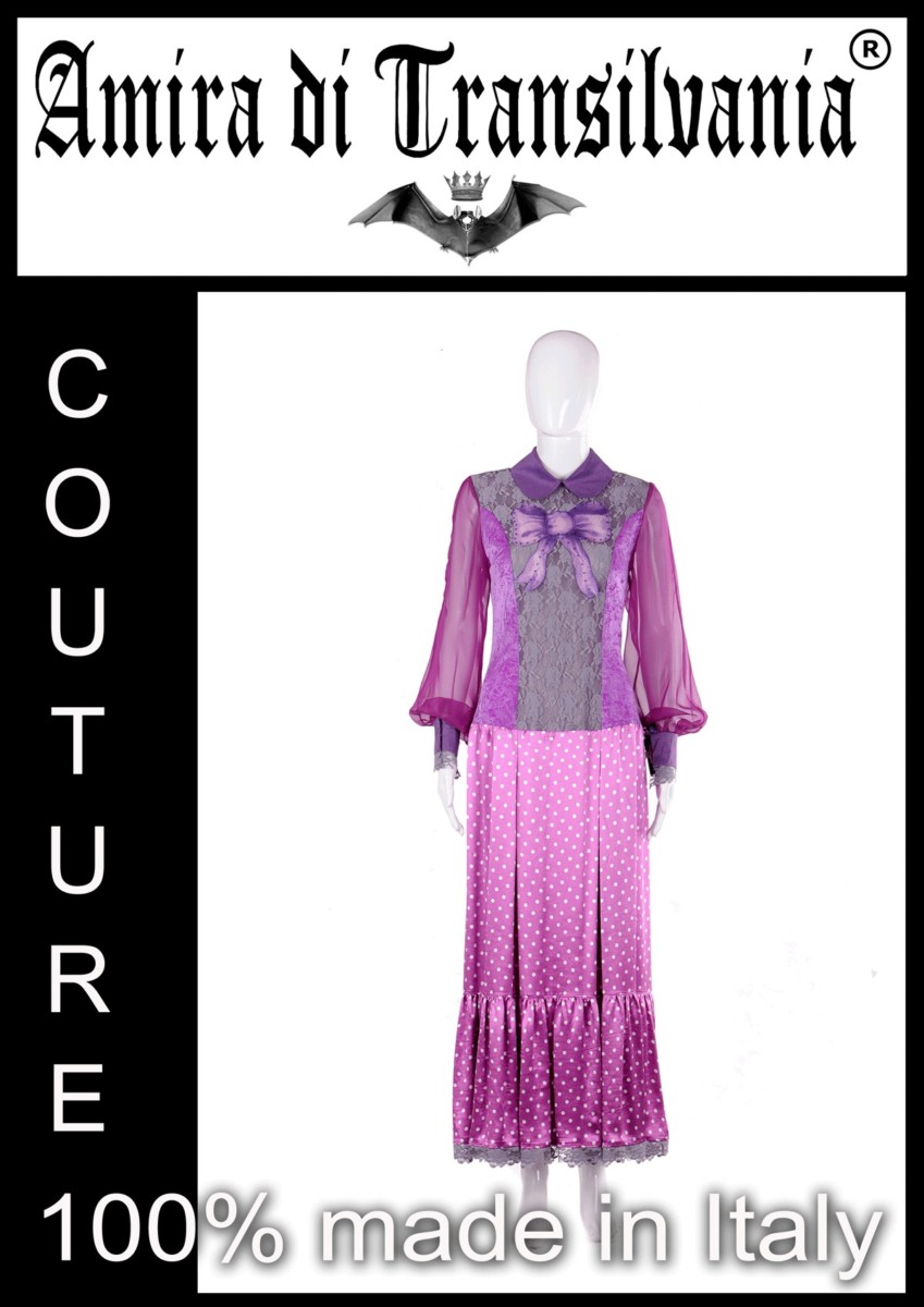 Abito couture viola con fiocco