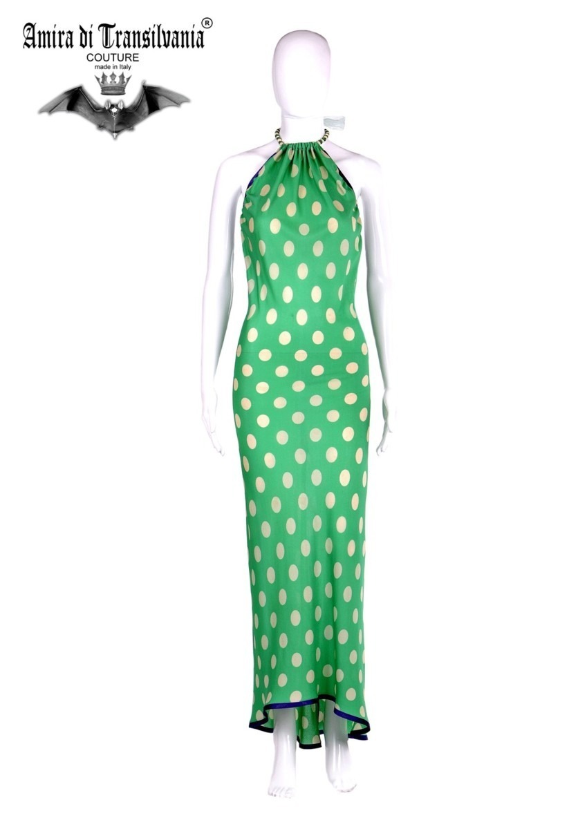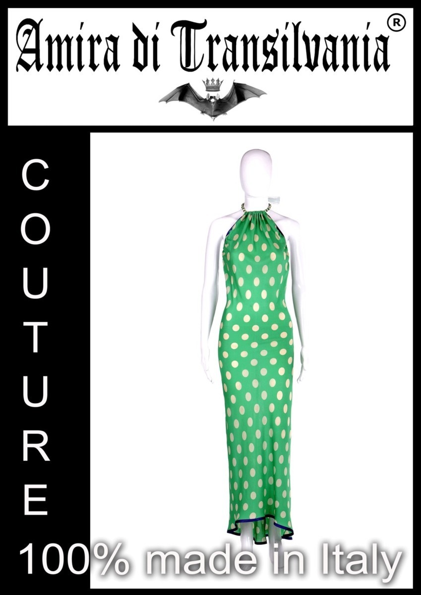Spiritoso Abito verde a pois bianchi. Qualità sartoriale. 100% made in Italy