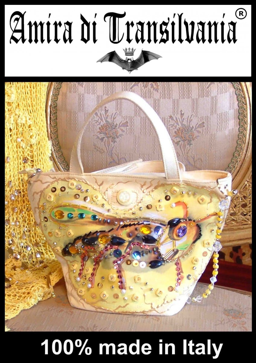 Borsa gialla ape Maya è un accessorio bon ton di grande impatto da portare a mano o sul avant braccio.