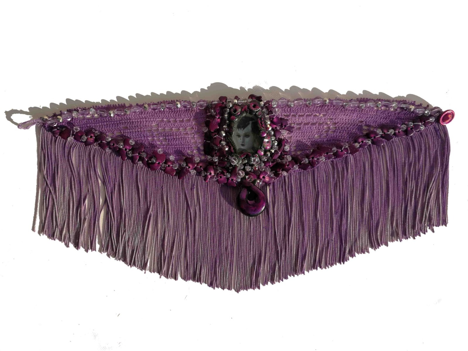 Tuttavia è un accessorio originale e prezioso fatto interamente a mano con uncinetto e frange. Dipinto a mano con colori ecologici e ricamate a mano con perline varie.