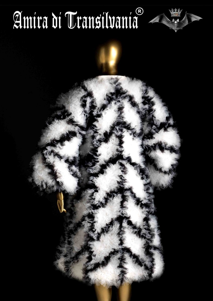 Preziosa e fashion pelliccia ecologica in nodi di tulle bianco nero