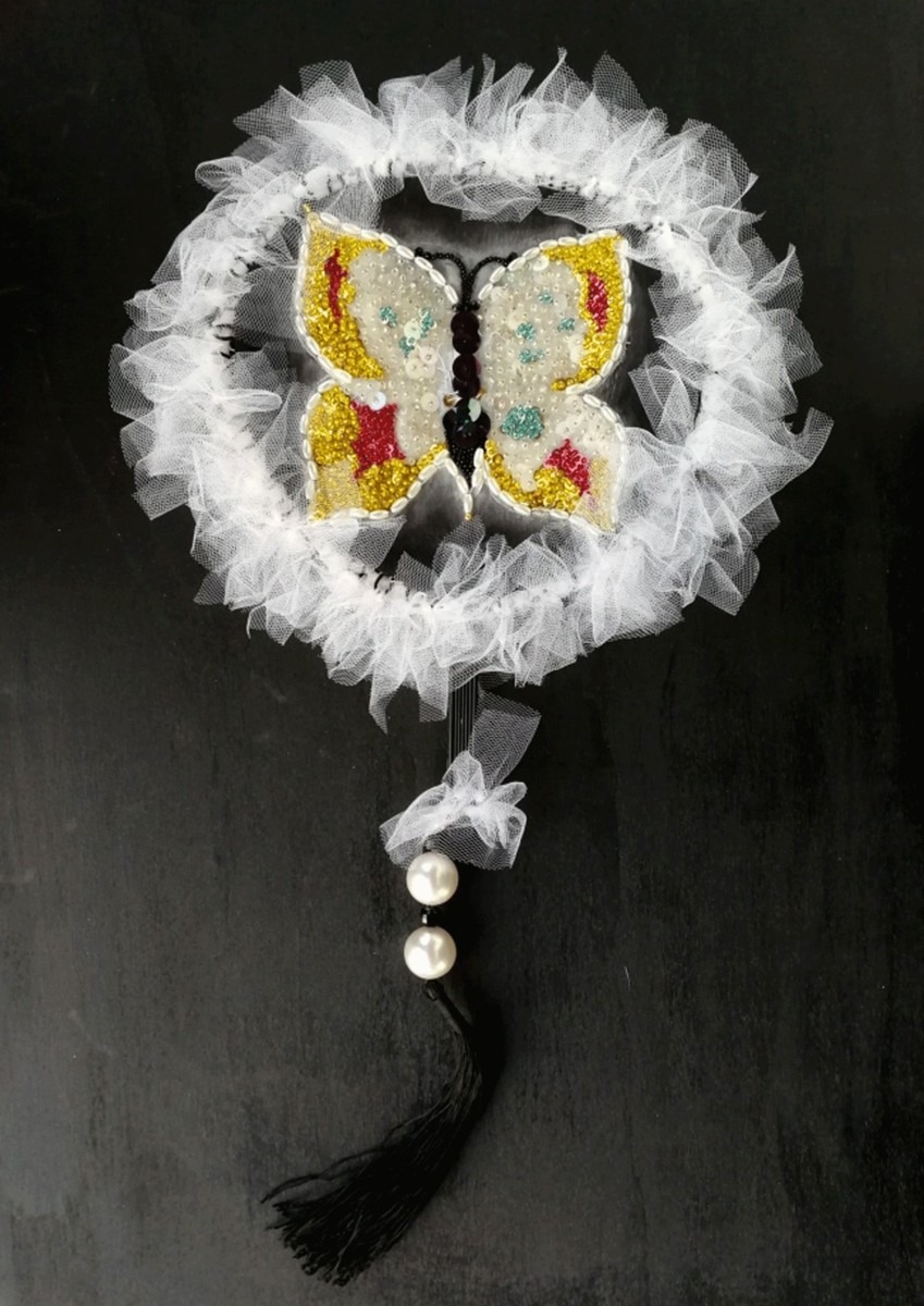 Preziosi ventaglio ricamato fiori e farfalla è un accessorio inedito di grande stile , pregio e manufattura italiana.